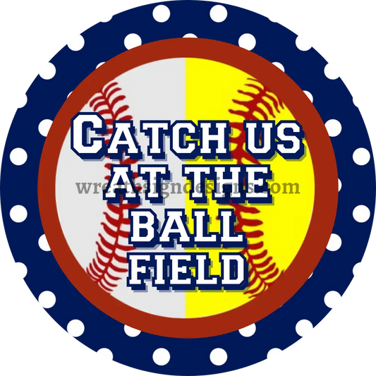 Catch us at the Ballfield-Softball/Baseball Blue Dot - Metal Wreath Sign MS-1523