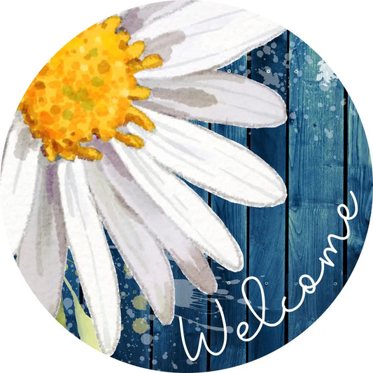 Welcome Daisy on Blue - Metal Wreath Sign MS-1531