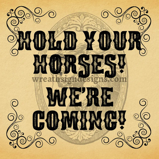 Hold Your Horses-We're Comin' - Metal Wreath Sign MS-1507