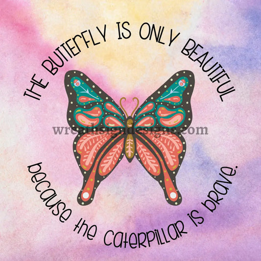 The butterfly is only beautiful because the Caterpillar is brave - Metal Wreath Sign MS-1492