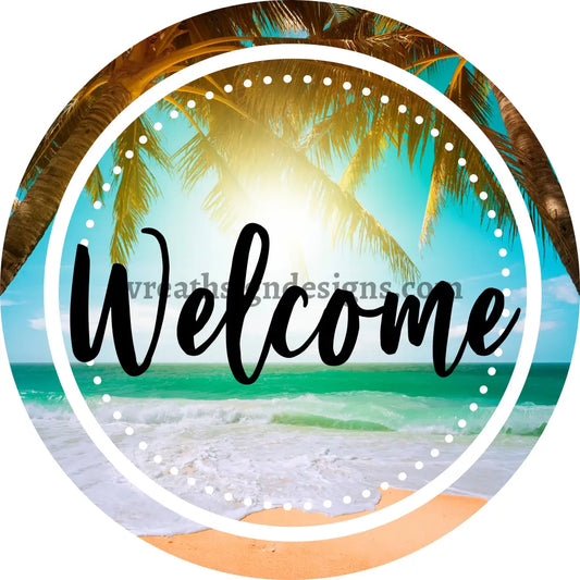 Welcome Beach & Palm Trees - Metal Wreath Sign MS-1502