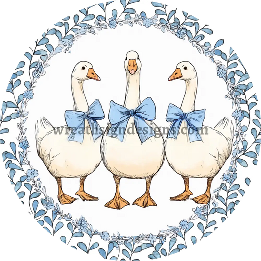 Blue Retro Goose Vintage Style Wreath Sign MS-1226