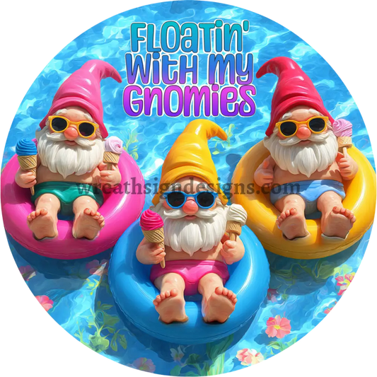 Floatin' with my Gnomies - pool Gnomes Metal wreath Sign MS-1229