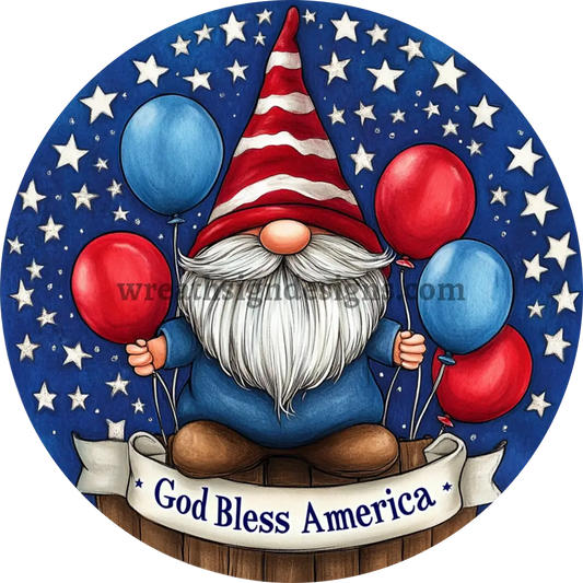 God Bless America Patriotic 4th of July Gnomes Stars-Patriotic Metal Wreath Sign MS-1206
