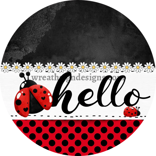 Hello Ladybug and daisies Metal Wreath Sign MS-1207