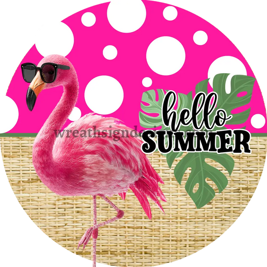 Hello Summer Pink Flamingo Polka Dot Metal wreath Sign MS-1227