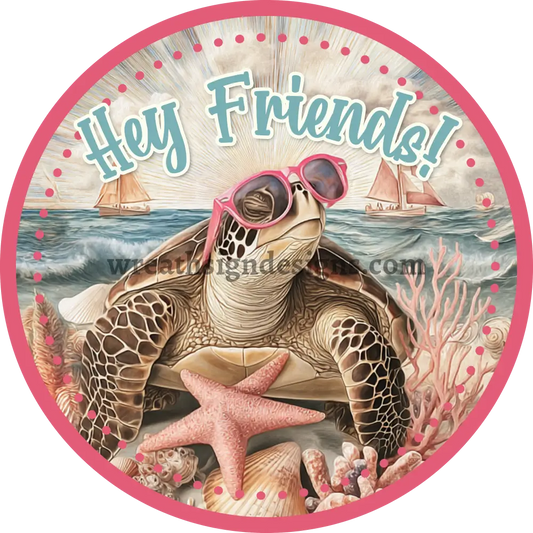 Hey Friends Sea Turtle- summer beach wreath sign Round Metal Wreath Sign MS-1214