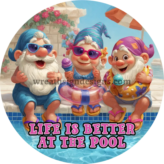 Life is better at the Pool - pool Gnomes Metal wreath Sign MS-1230