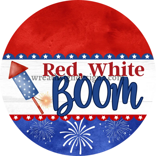 Red White & Boom 4th of July Fireworks-Patriotic Metal Wreath Sign MS-1215