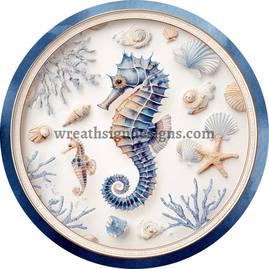 Seahorse and Seashell Beach Metal Wreath Sign MS-1212