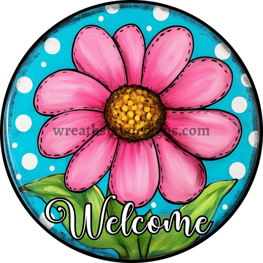 Welcome Pink Daisy Metal wreath Sign MS-1209