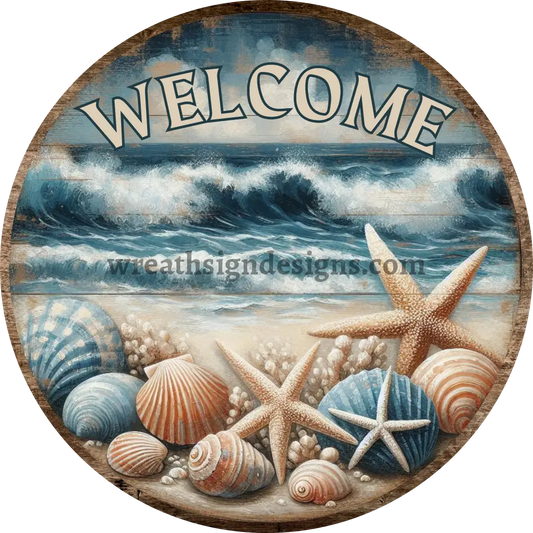 Welcome Seashell Beach Metal Wreath Sign MS-1211