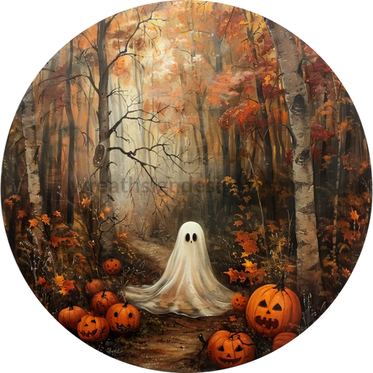 autumn Forest Ghost Metal Halloween Wreath Sign