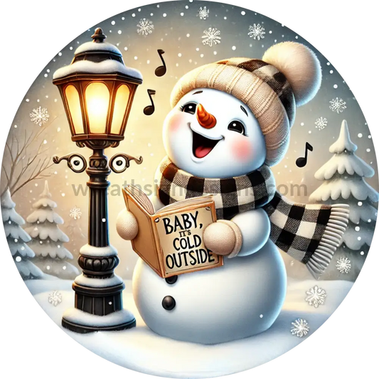 Baby It's Cold OUtside Singing Snowman- Metal Wreath Signs