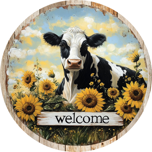 Welcome Sunflower Cow- Metal wreath Sign MS-1081