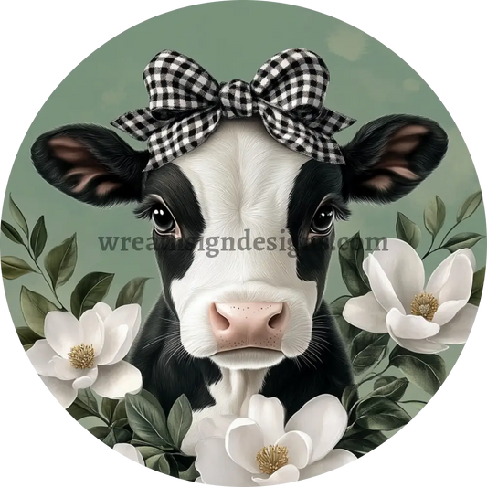 Magnolia Baby Cow- Metal wreath Sign MS-1042
