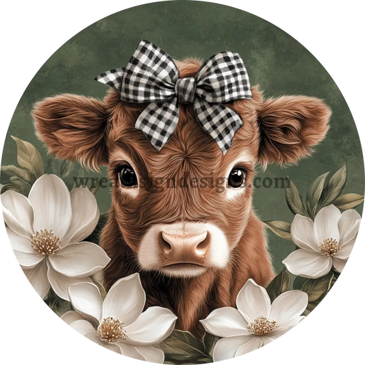 Magnolia Baby Highland Cow- Metal wreath Sign MS-1114