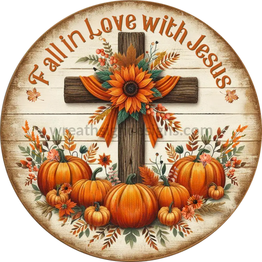 Fall in Love with Jesus Pumpkins and Cross Faith based Christian Metal Wreath Sign