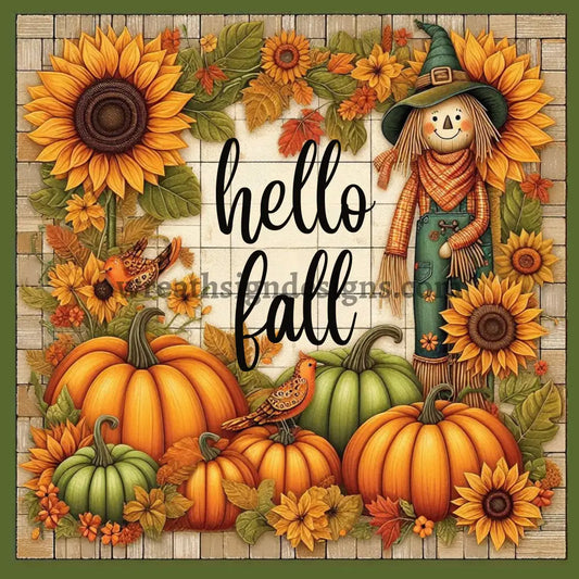 Hello Fall Vintage Sunflowers square Metal Wreath Sign
