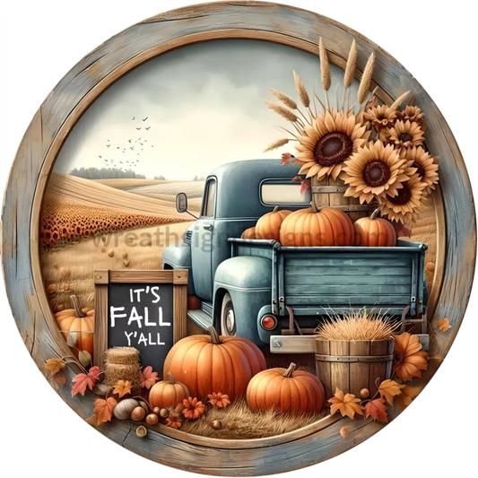 It's fall yall Pumpkin sunflower truck Metal Wreath Sign (Copy)