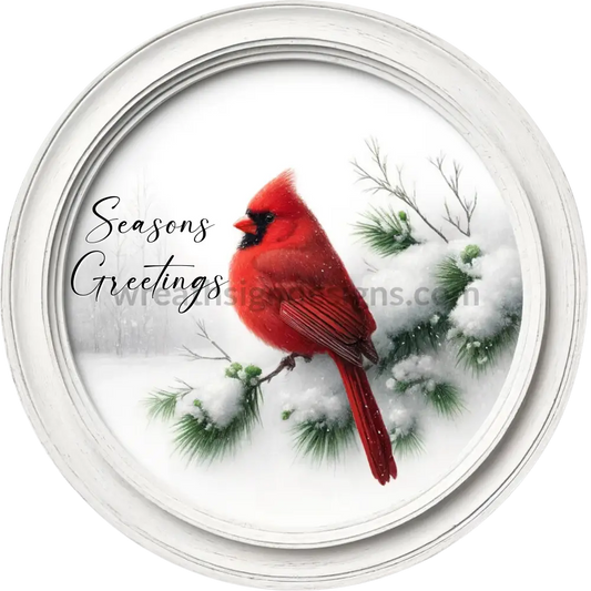 Seasons Greetings- Winter Cardinal-Round Metal Wreath Signs