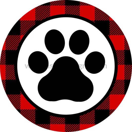 Paw Print Red Buffalo plaid Border- Metal Wreath Sign