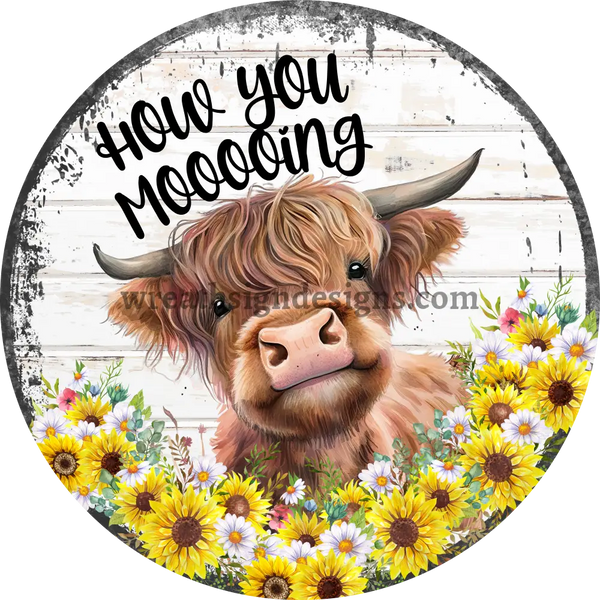 How You mooooing Daisies and sunflowers - Highland Cow Metal Sign